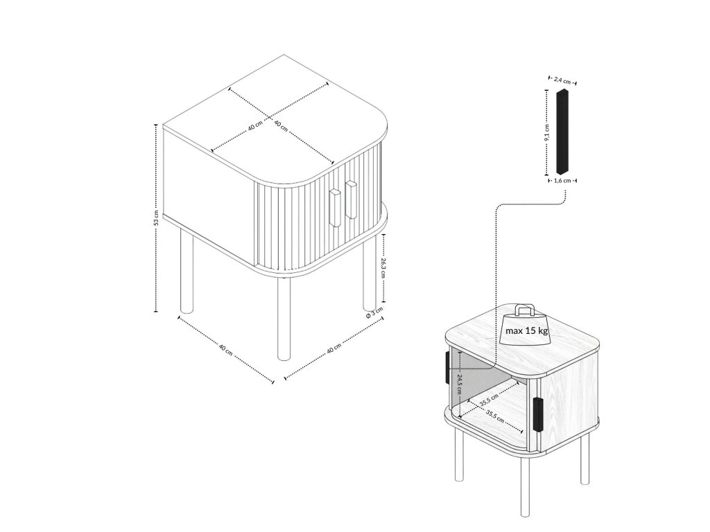 - Specifikace a montáž: Celkové rozměry jsou 40 x 40 x 53 cm (dél. x hl. x výš.). Maximální zatížení celkem: 15 kg (vrchní deska: 10 kg, vnitřek: 5 kg). Produkt k vlastnímu montáži s přehledným návodem.