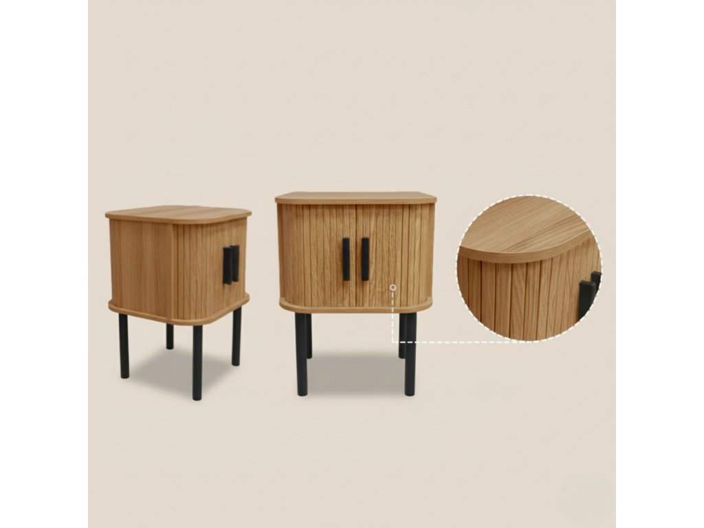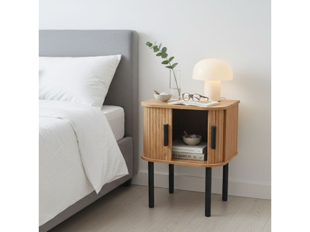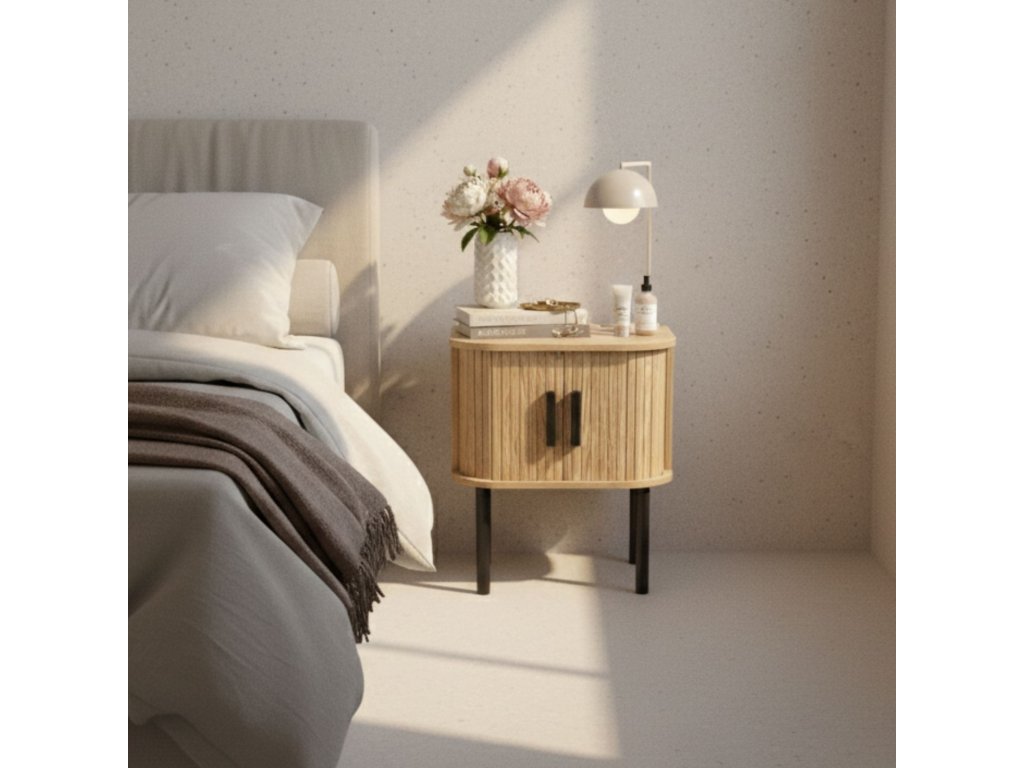 Noční stolek s rýhovanými čely z kolekce SCAVA – kompaktní skříňka do ložnice
