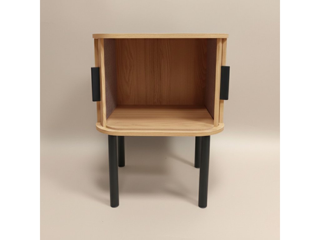 - Praktické úložení: Za posuvnými dveřmi se skrývá prostorná přihrádka (vym. 35,5 x 35,5 x 24,5 cm), ideální pro schování knih, nabíječek nebo jiných osobních drobností.