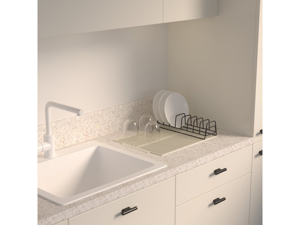 - Promyšlená konstrukce: Speciální drážky na podložce účinně odvádějí vodu, což zabraňuje hromadění vlhkosti. Díky tomu nádobí rychleji schne a vaše kuchyně zůstává v pořádku.