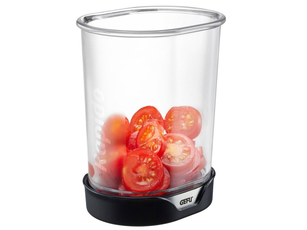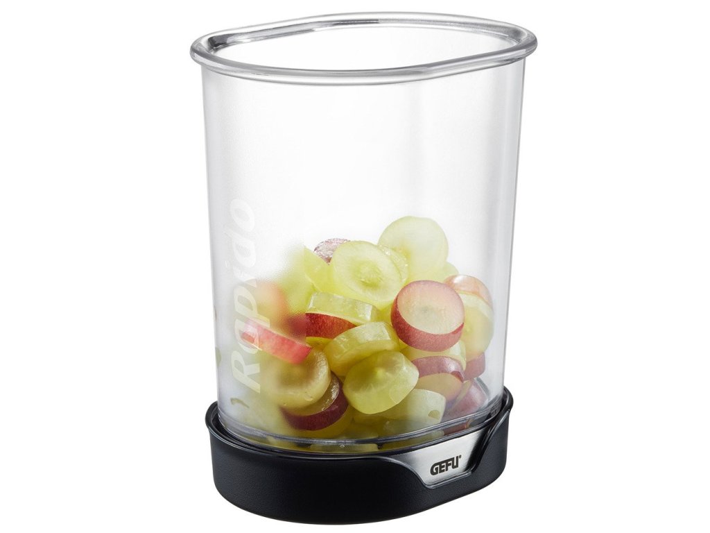 Profesionální kuchyňské nože, kráječe na zeleninu a ovoce, sekáčky značky Gefu byly vytvořené s cílem zjednodušení, usnadnění a urychlení činnosti související s přípravou pokrmů. S tuto kuchyňskou pomůckou ušetřete čas a snadno připravíte hlavní jídlo nebo svačinu. Kráječ na zeleninu a ovoce „Rapido“ v jednoduchý a především velmi rychlý způsob řezá svými japonskými ostří na stejné a esteticky vypadající plátky. Stáčí zmáčknout nádobu aby salát, zapékané nebo sendvič ochutnat nakrájenými plátky rajčaty, okurky a ředkviček, anebo ledový dezert sladkými jahody nebo melounem. Sekačka „Rapido“ je vyrobena z bezpeční ve styku s potravinami, hygienické a velmi odolné nerezové oceli a odolných plastů. Japonské ocelové nože a stroj na řezání jsou dobře provedené, a použité suroviny působí, že zařízení může pracovat bez překážek na dlouhou dobu.