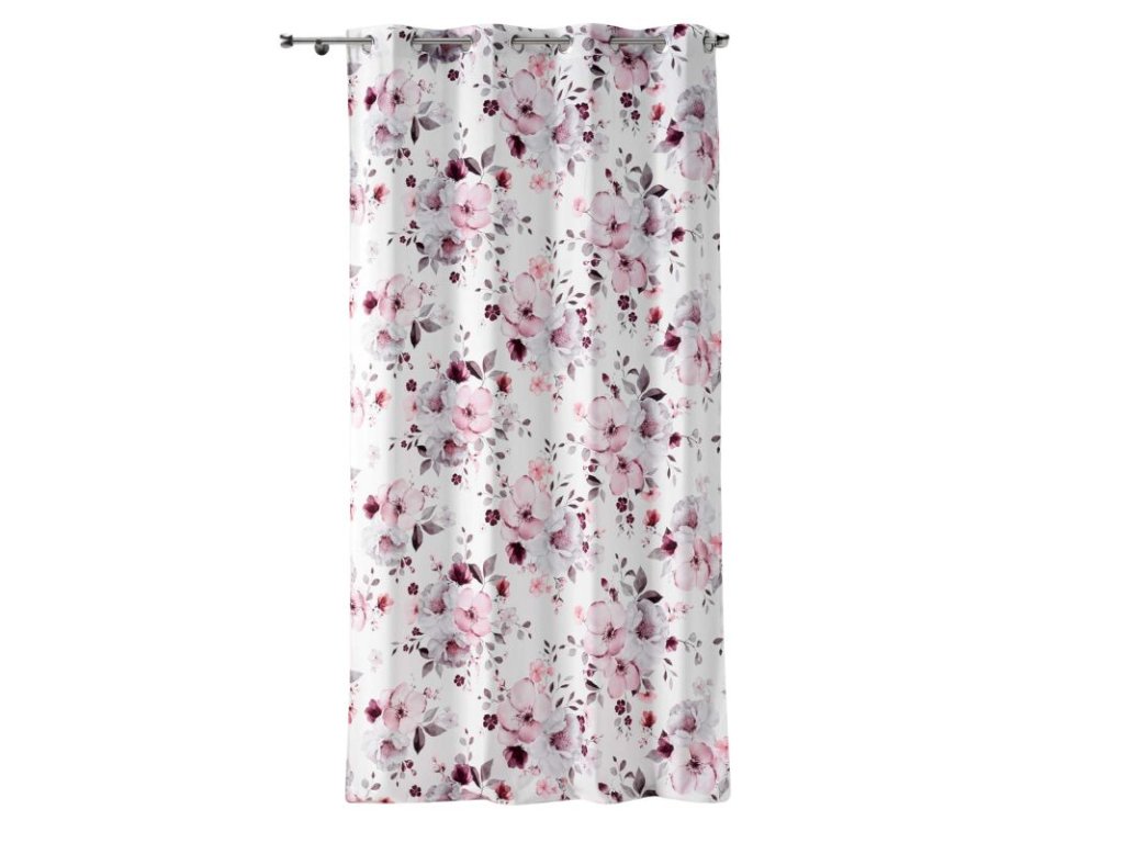 Bílý závěs s očky, velké květiny, 140 x 240 cm, 1 ks