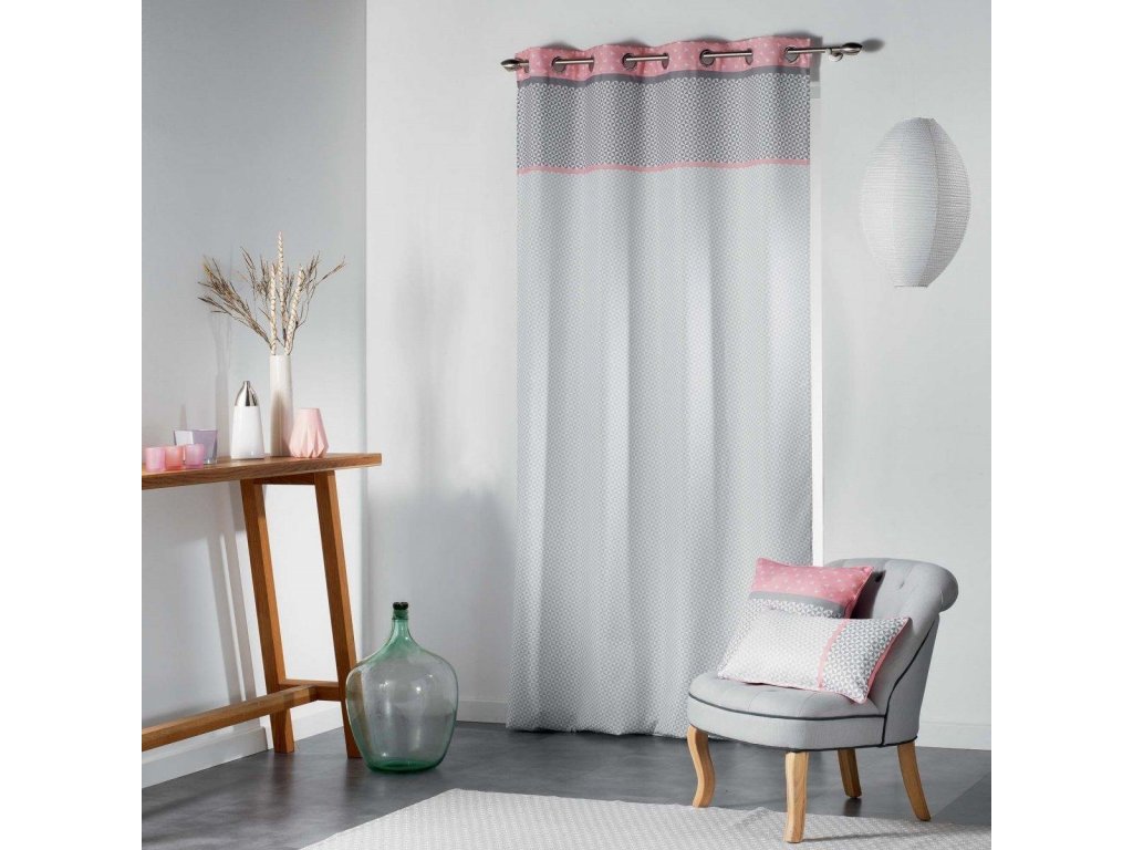 Závěs MATIK 140 x 260 cm, bílý s růžovou výzdobu