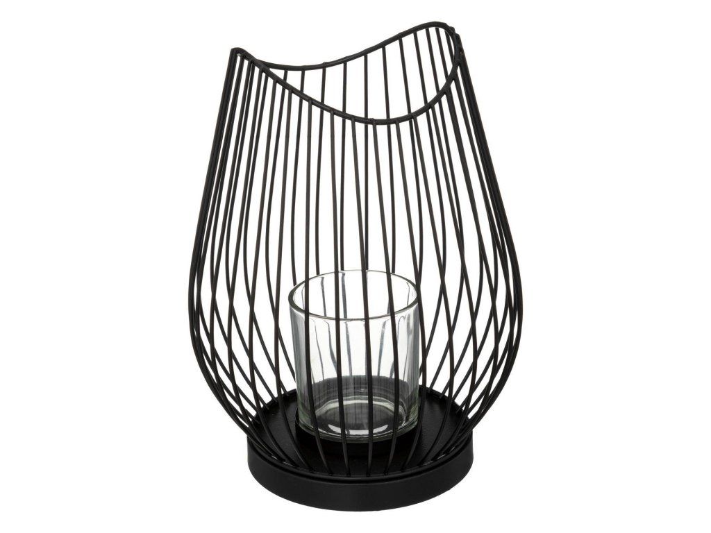 Kovová lucerna na svíčku, 23,5 cm, černá