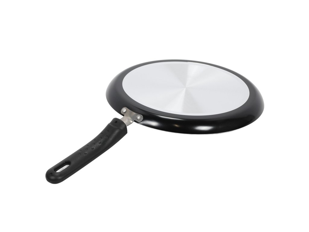 Nízké stěny a plochý tvar pánve zajistí, že příprava placka a manipulace s ním (otočení s pomocí lopatky, převrácení) bude mimořádně snadná. Pečlivě profilovaná rukojeť má drážky stabilizující palec, díky čemuž pevně a stabilně leží v ruce. Je vyrobena z kvalitního umělého materiálu, což zabrání nahřívání se držadla během používání. Rukojeť je vybavena podélným otvorem, který umožňuje zavěšení pánve na háček, ale vejde se také do skříně nebo zásuvky (i té ploché). Velký průměr (26 cm) usnadní přípravu opravdu velkých palačinek.