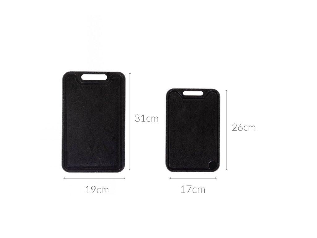 - Optimální rozměry: Prkénka mají různé velikosti (31 x 19 cm; 26 x 17 cm), což umožňuje pohodlné krájení jak malých, tak větších ingrediencí.