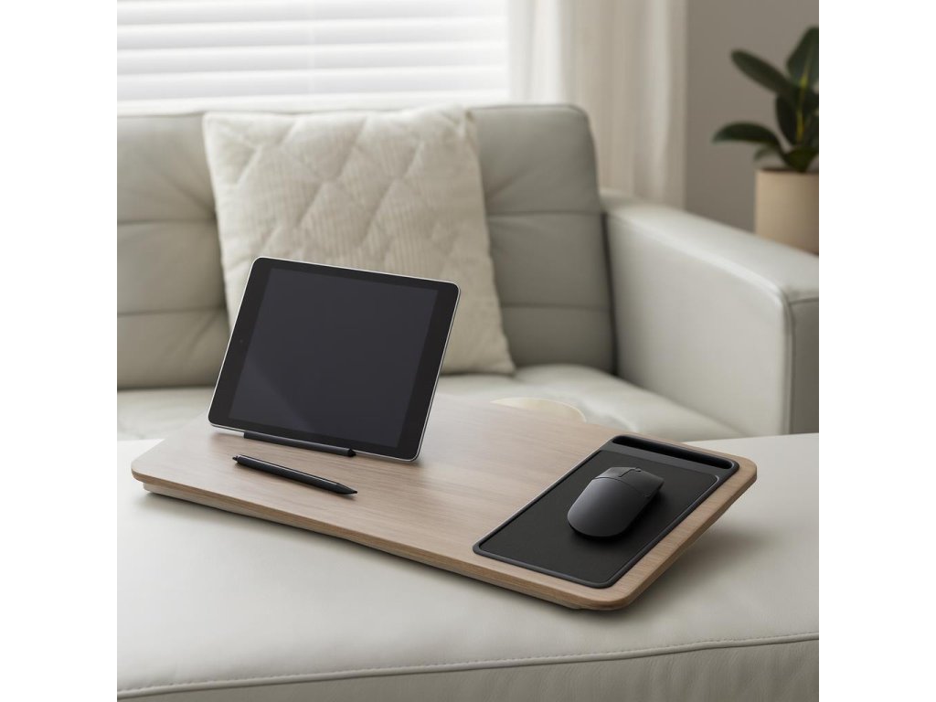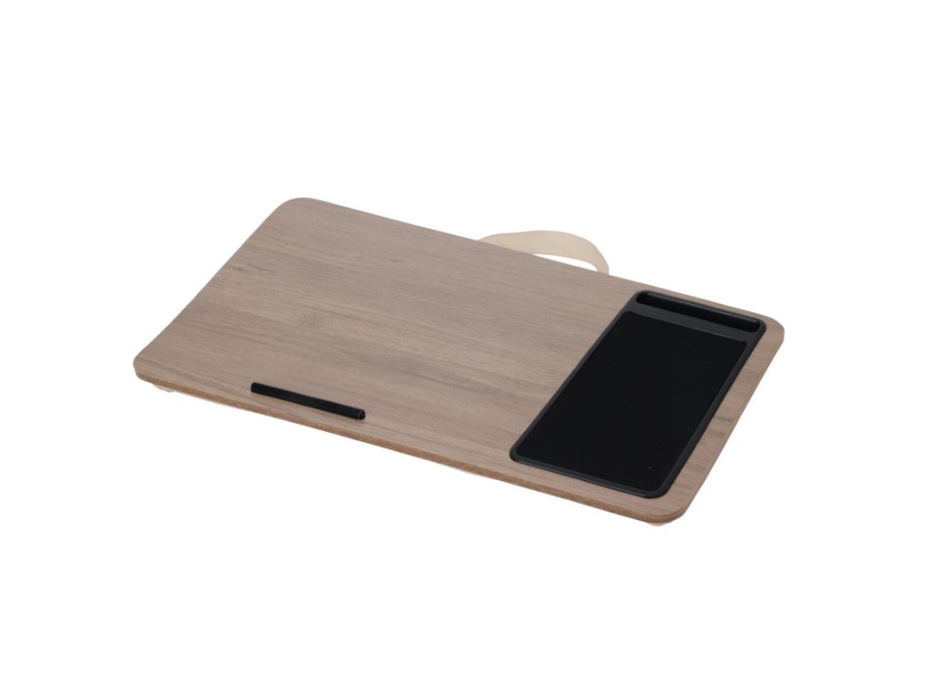- Promyšlená konstrukce: Rozměry 57,5 x 30,5 x 4 cm zajišťují, že stůl je dostatečně velký, aby pojmul laptop a další příslušenství, jako je myš nebo telefon. Další místo na myš zajišťuje komfort při práci.