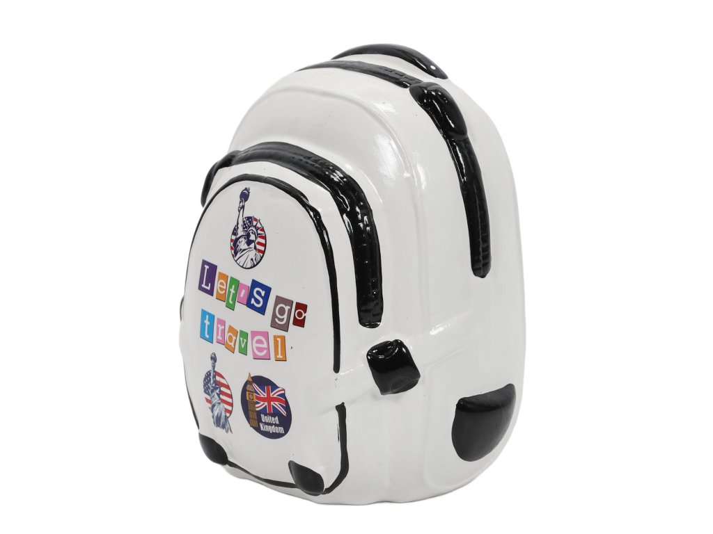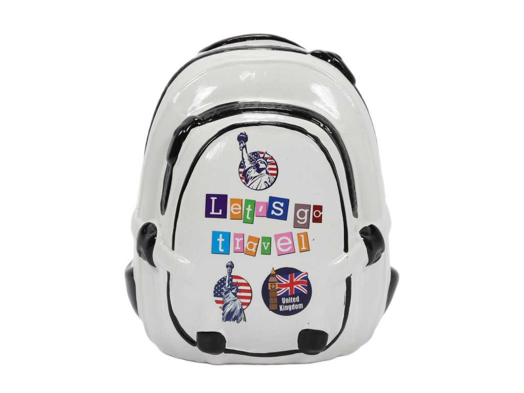 Barevná keramická pokladnička s cestovním motivem, batoh