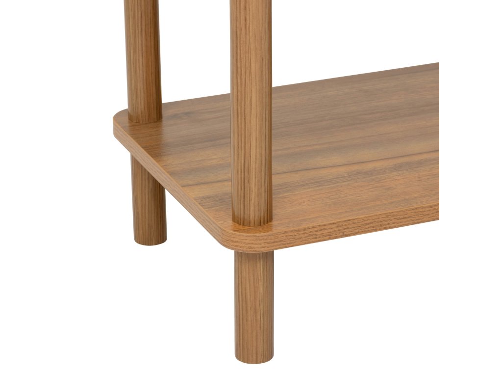 - Funkční police: Police má tři úrovně skladování, včetně dvou otevřených polic s dřevěným dekorem a bílou horní deskou. Díky tomu můžete snadno uspořádat své předměty a mít k nim rychlý přístup.