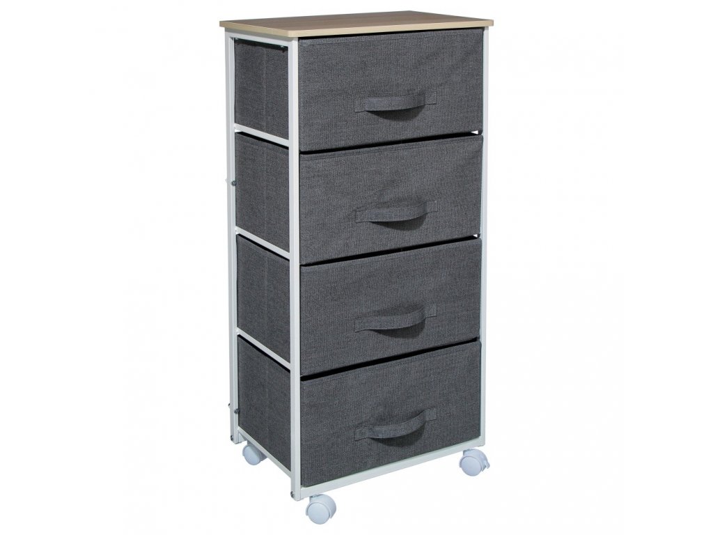 Skříň se čtyřmi zásuvkami, textilní skříň s dekorativním vrcholem, tmavě šedá