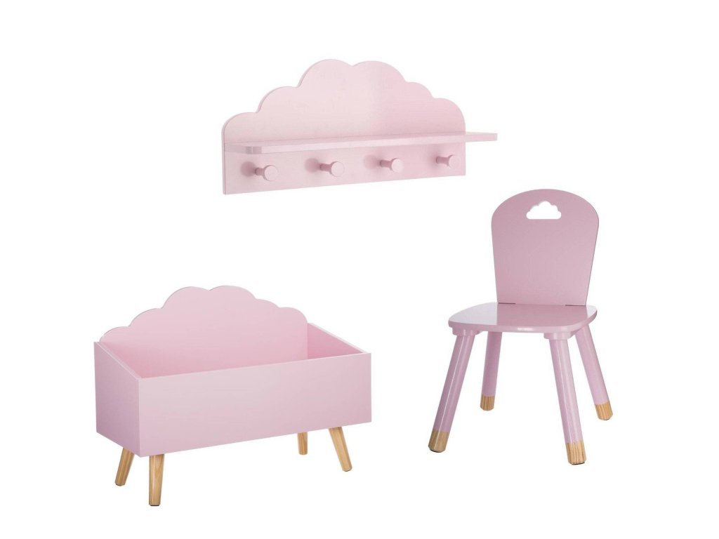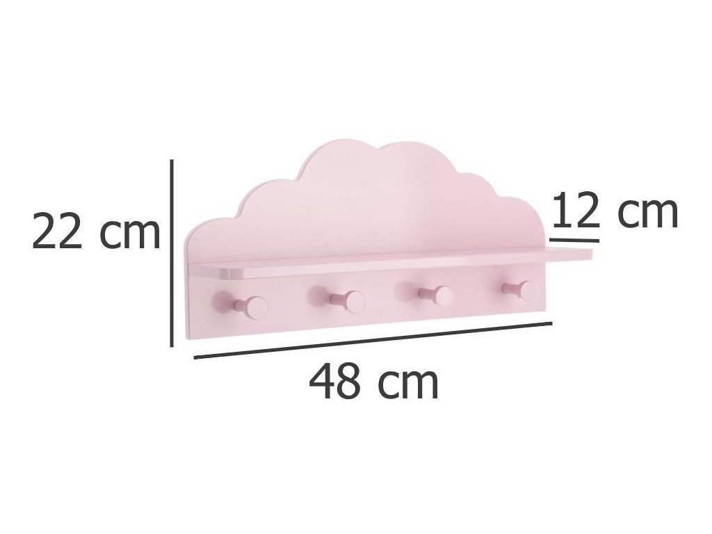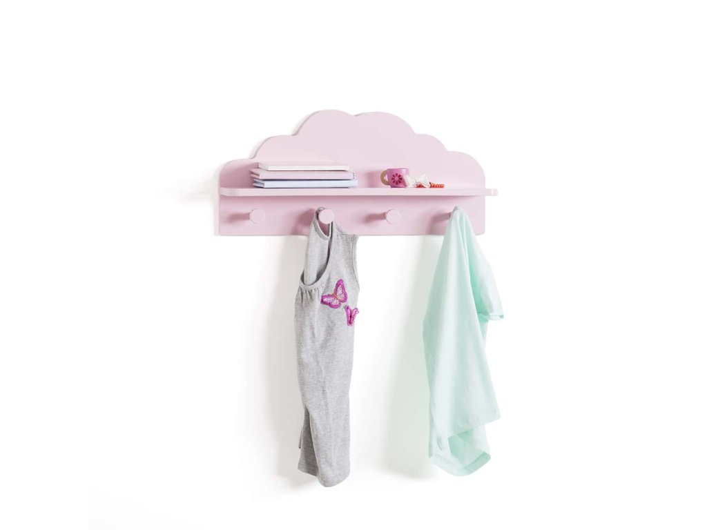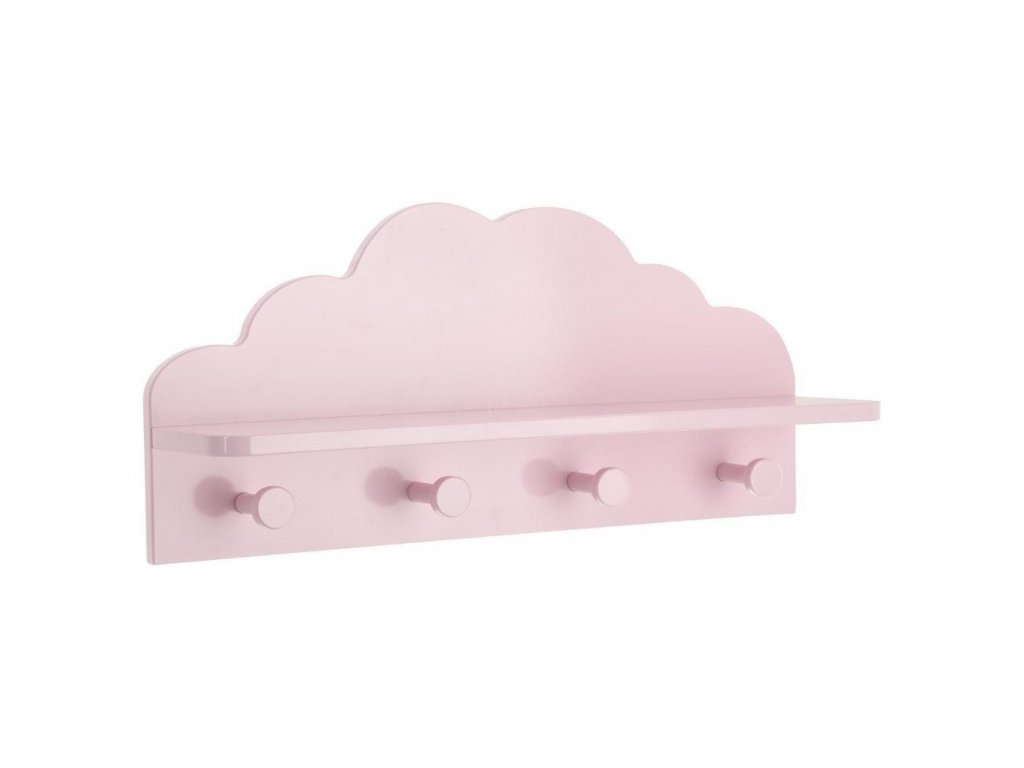 Růžová dětská polička CLOUD, 4 háčky, 48 x 22 x 12 cm