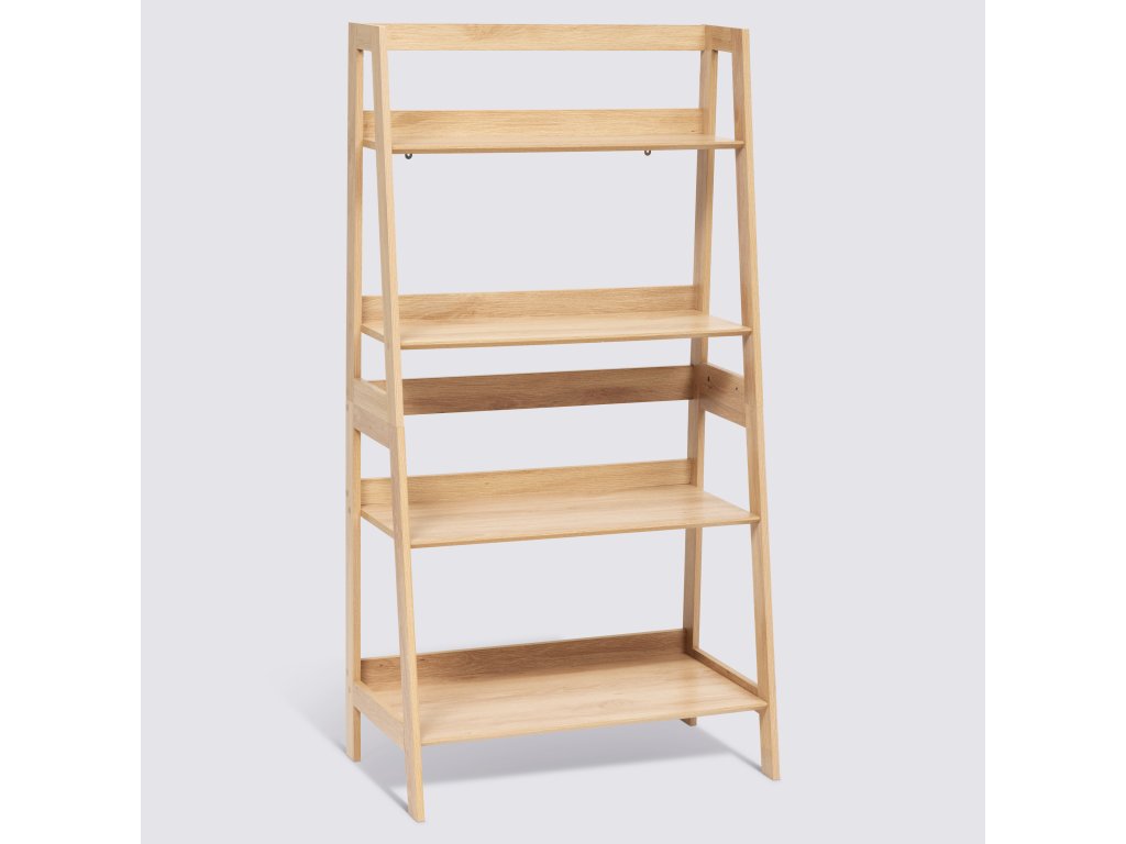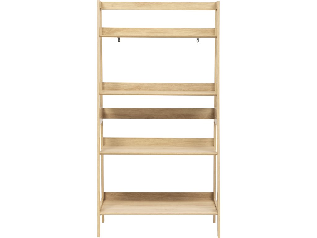 Skandinávská knihovna s pěti policemi pro ukládání knih a dekorací - ideální spojení funkčnosti a stylu ve vašem interiéru