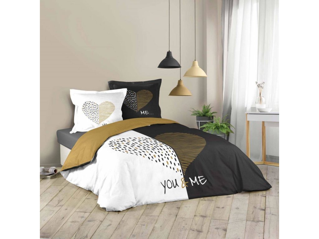 Francouzská značka Douceur d'intérieur připravila neuvěřitelně roztomilý design bavlněného povlečení pro páry. Harmonicky sladěné kontrastní barvy se prolínají s jemným nápisem. Díky romantickému vzhledu je povlečení skvělým dárkem pro novomanžele nebo páry žijící společně.
