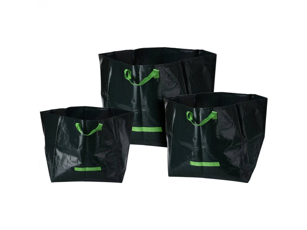 - Sada 3 různých velikostí: Sada obsahuje 3 tašky o objemech 70, 105 a 175 litrů, díky čemuž jsou ideální pro různé zahradní úkoly.