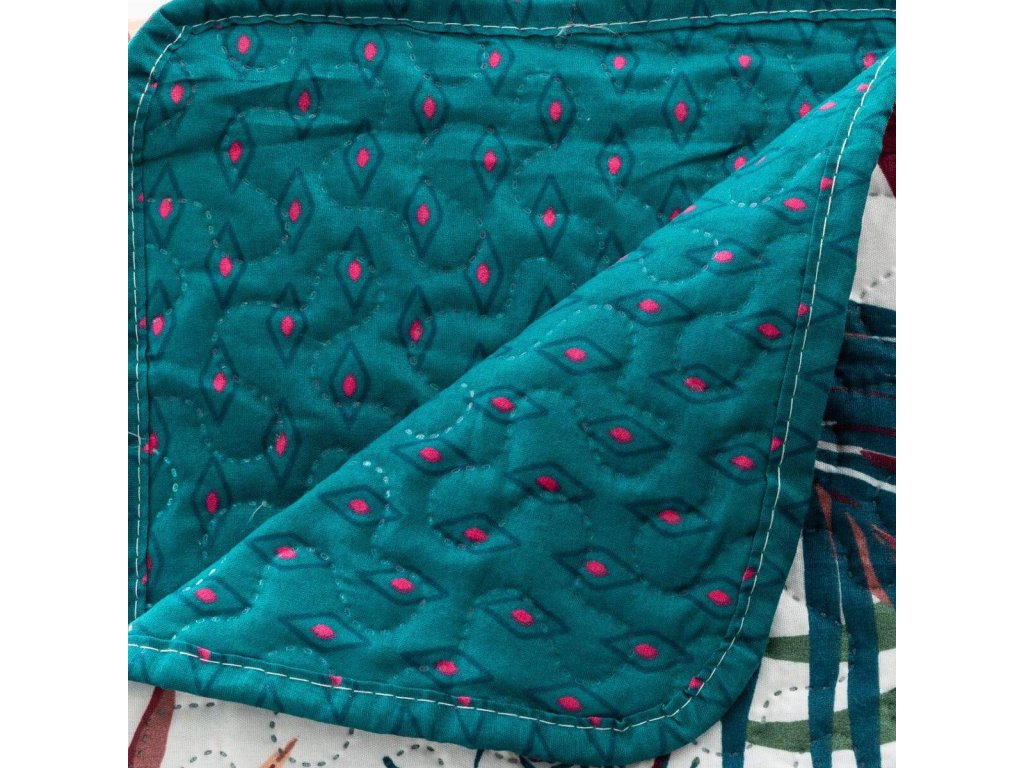 Pečlivě šitý z vysoce kvalitního polyesterového krytu je dokonalou ochranou proti nečistotám na lůžku a zároveň příjemným doplňkem. Kapa na každé straně má jiný vyšívaný vzor, který vám umožní rychle změnit výzdobu podle vašich představ. Tropické vzory listů a hluboké zbarvení způsobí, že vaše ložnice vypadá exoticky. Příjemný na dotek, měkký materiál a prošívaná textura jistě zpříjemní váš odpočinek.