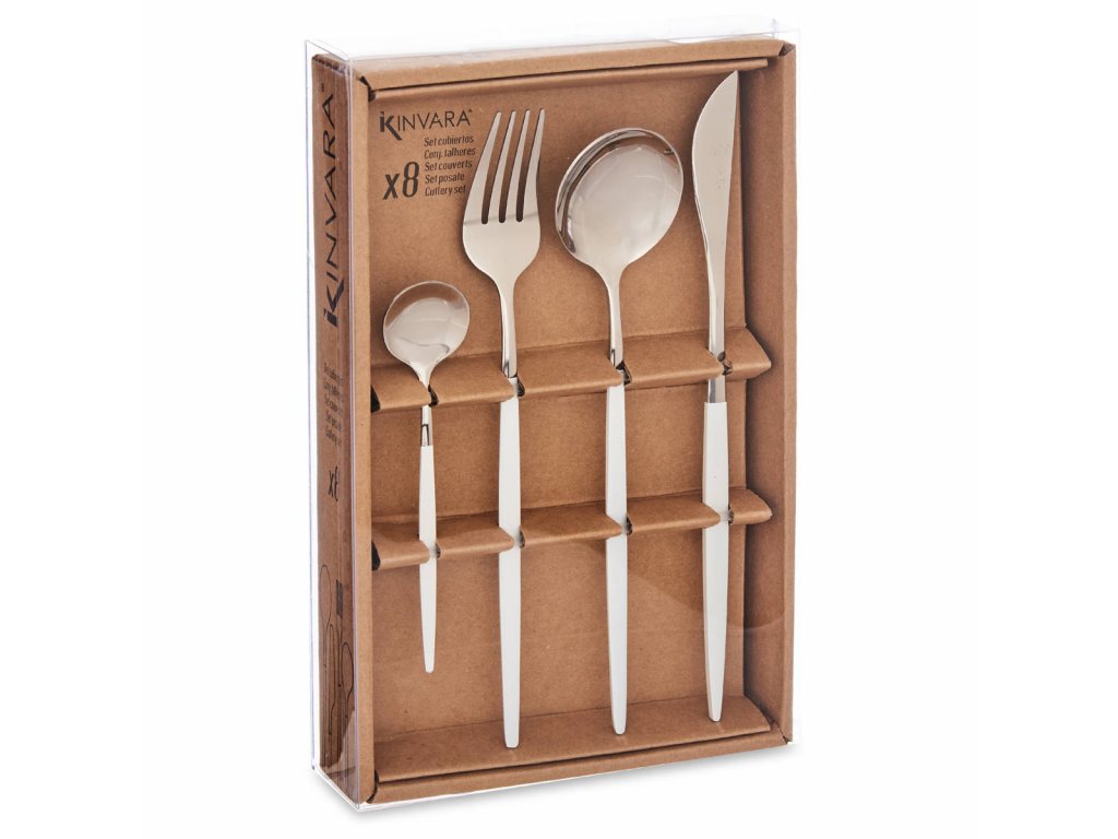 - Sada se skládá z 8 kusů: Sada obsahuje 2 nože, vidličky, lžíce a lžičky. Vše, co potřebujete k přípravě a servírování jídel v jedné sadě.