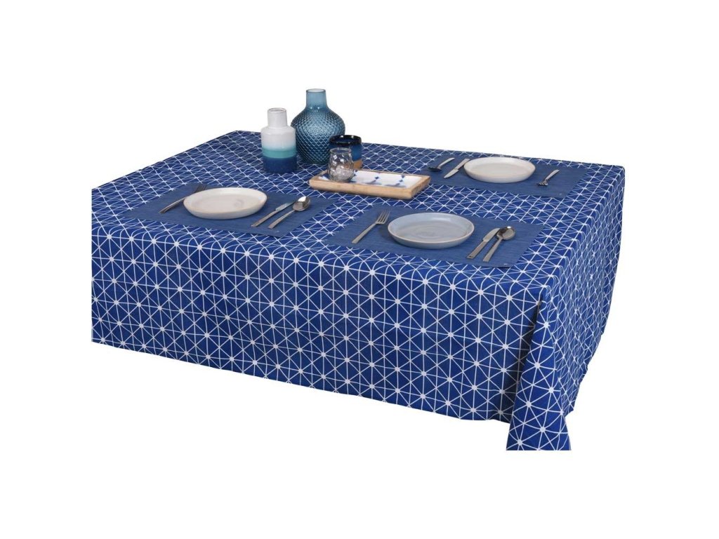 Zahradní ubrus zahrada v modré barvě s bílým vzorem, elegantní voskované plátno na stůl v zahradě nebo terase