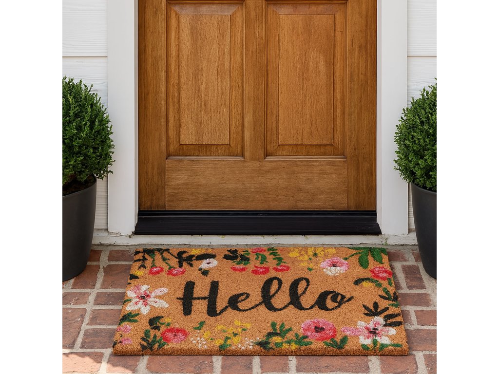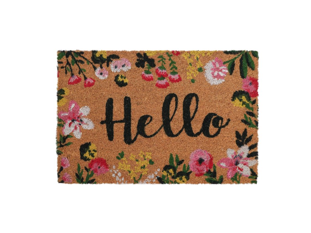 Rohožka s květinovým vzorem a nápisem HELLO, 59 x 39 cm