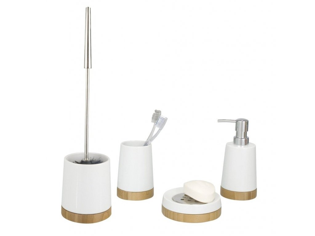 Sada: Kelímek na kartáčky, dávkovač mýdla, mýdlenka a WC štětka BAMBOO