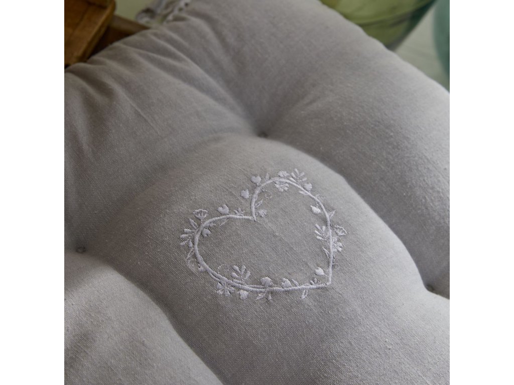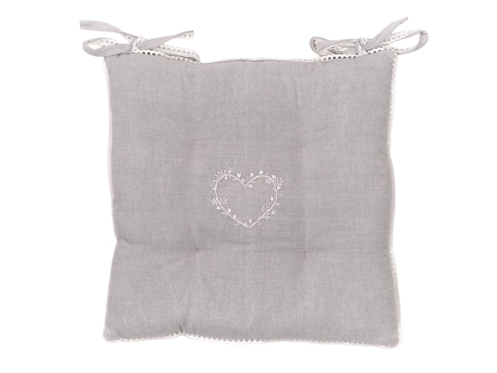 - Stylový design: Polštář zdobený výšivkou ve tvaru srdce a krajkovým zakončením dodává interiéru útulný a rustikální charakter. Je to vynikající doplněk do každé místnosti, který oživí vaše židle.