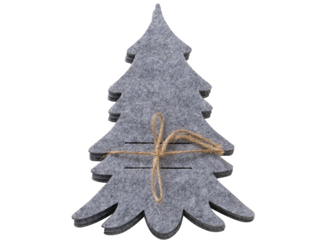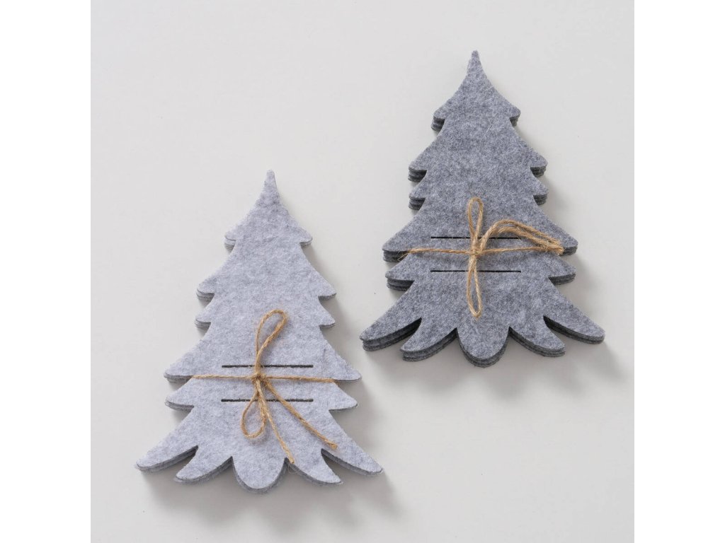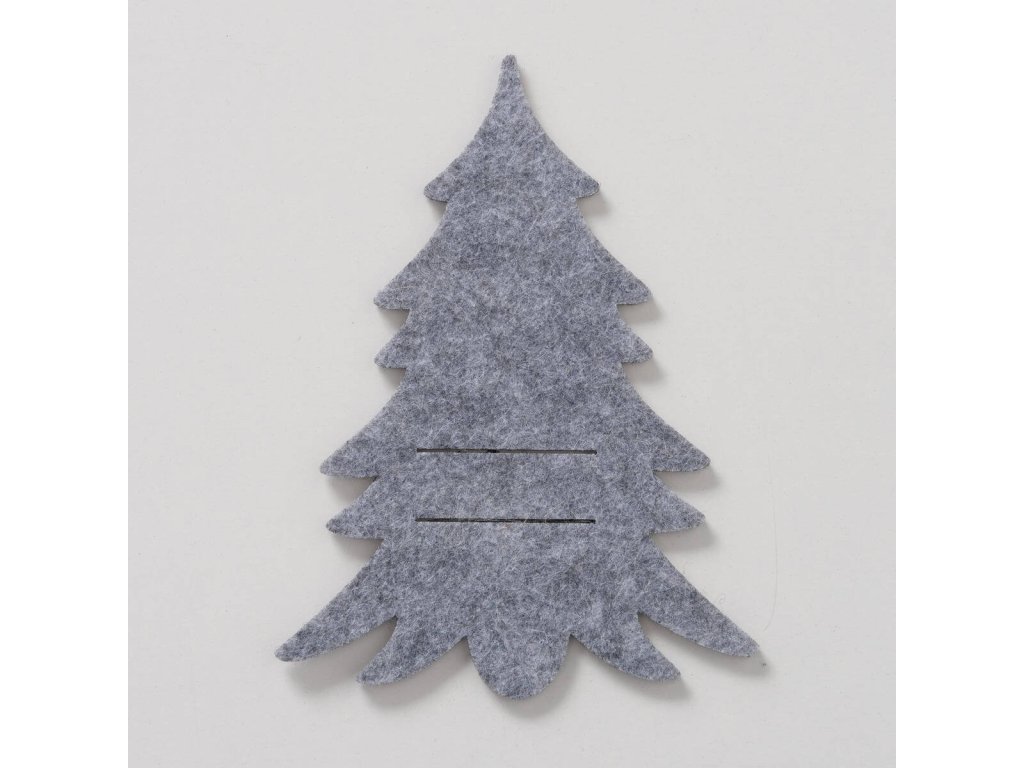 Plstěná kapsa na příbory FILZY ve tvaru vánočního stromečku, šedá, polyester