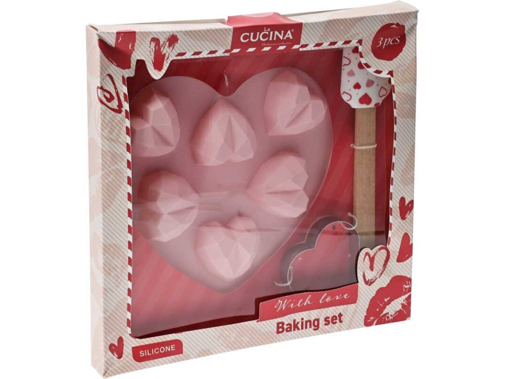 Set na pečení se srdičkovým motivem, růžový