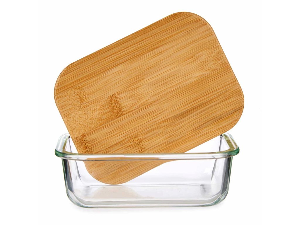 Skleněná nádoba na potraviny s bambusovým víkem: 3v1: nádoba, lunchbox a žáruvzdorná nádoba v jednom!