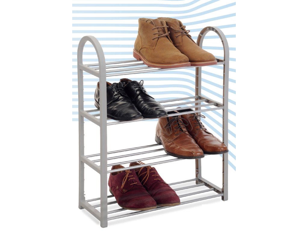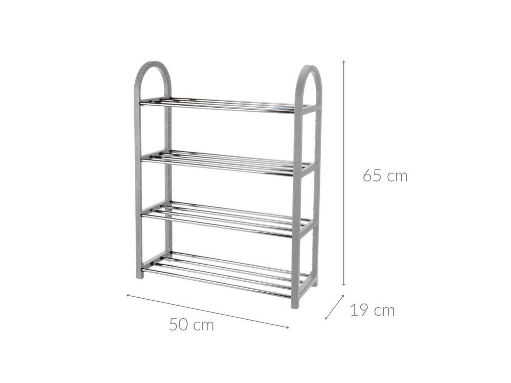 Praktická police na obuv. Pojme 8 až 12 párů bot. Najde uplatnění v předsíni, sklepě, chatě, skladovacím prostoru atd.