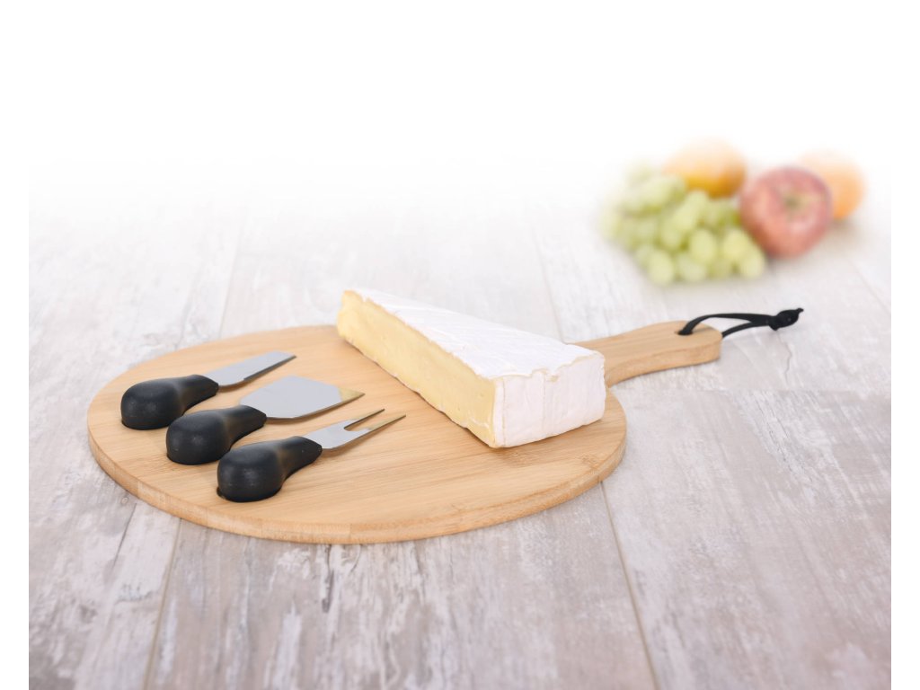 Servírovací prkénko na sýr, bambusové, 3 nože v sadě