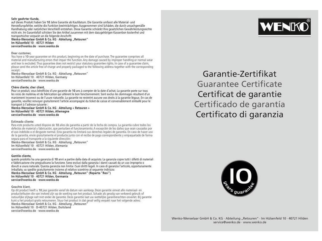 ? Odpovědná osoba: Wenko-Wenselaar GmbH & Co. KG