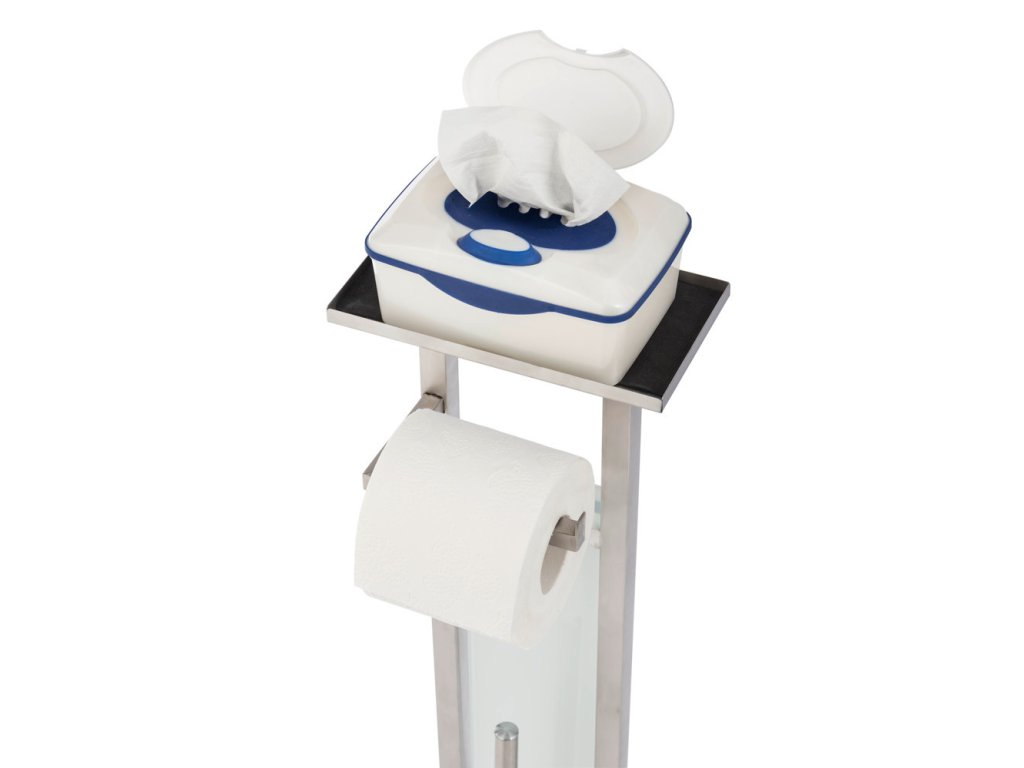 - Stojan na toaletní papír s držákem na kartáč a toaletní kartáč, police a prostor pro náhradní papírové rohlíky.