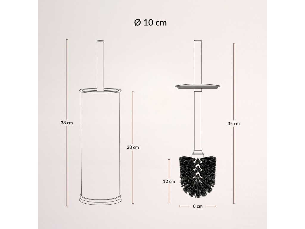 - Kompaktní rozměry: Díky průměru pouhých 10 cm se stojan vejde do každé, i té nejmenší toalety nebo do úzkého prostoru vedle skříňky.
