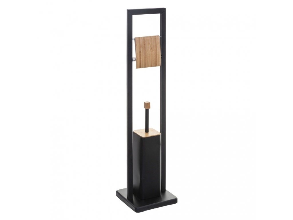 Toaletní kartáč s držákem toaletního papíru NATURELO, 2v1, barva černá