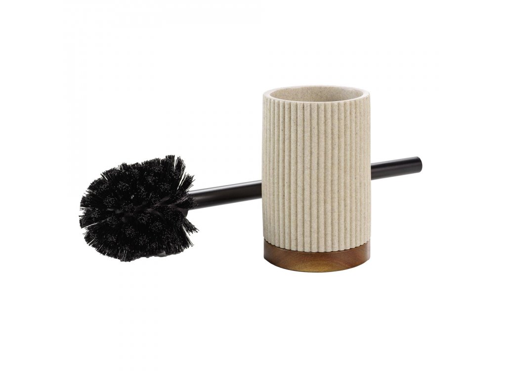 - Materiály nejvyšší kvality: Vyrobena z polyresinu a akácie, toaletní štětka je odolná a pevná. Tyto materiály zaručují dlouhotrvající používání bez obav z poškození nebo zničení.