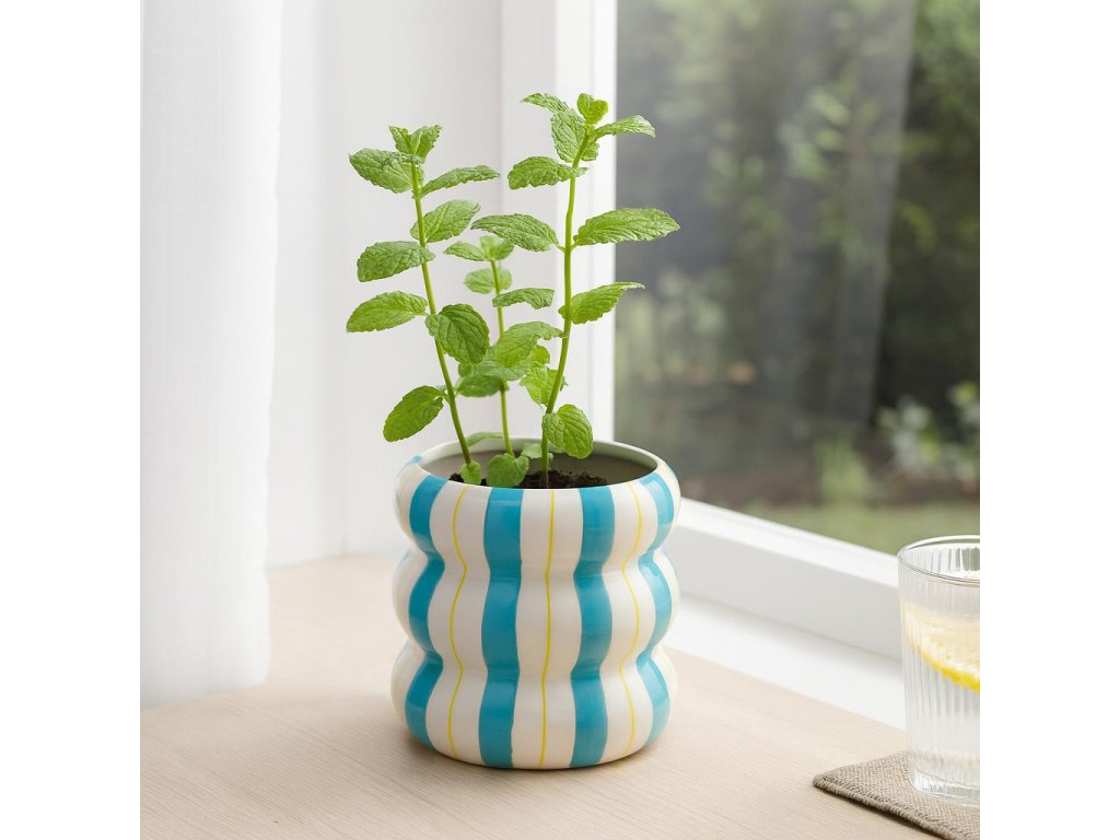 - Stylový design: Ceramický obal na květináč LINJE spojuje moderní vzhled s funkčností, dokonale se hodí do různorodých interiérů. Jeho jedinečný, vlnitý tvar a barevné pruhy přitahují pozornost a dodávají charakter každé místnosti.
