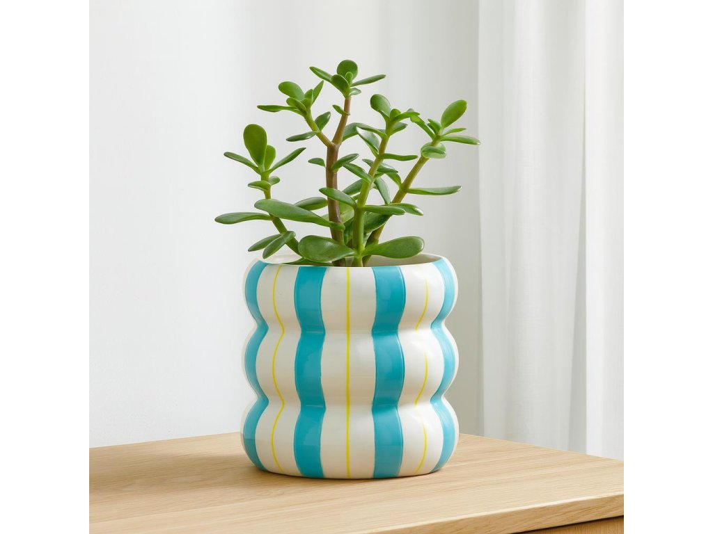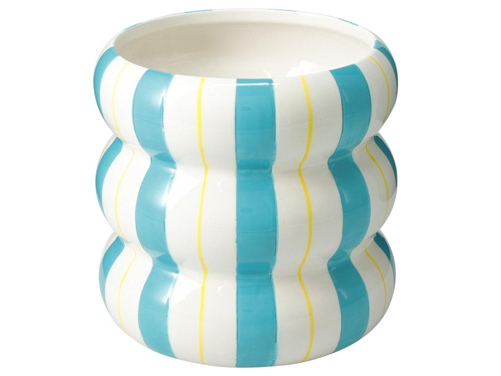 Ceramický obal na květináč LINJE s vlnitým tvarem a barevnými pruhy - stylový design, který se dokonale hodí do různorodých interiérů