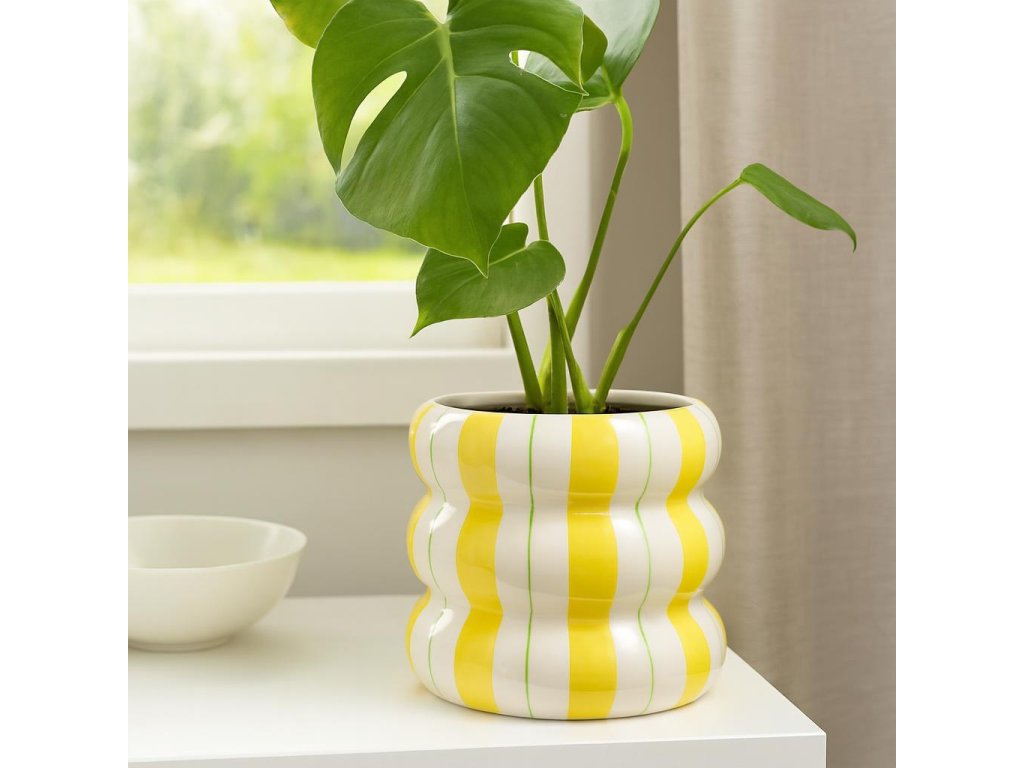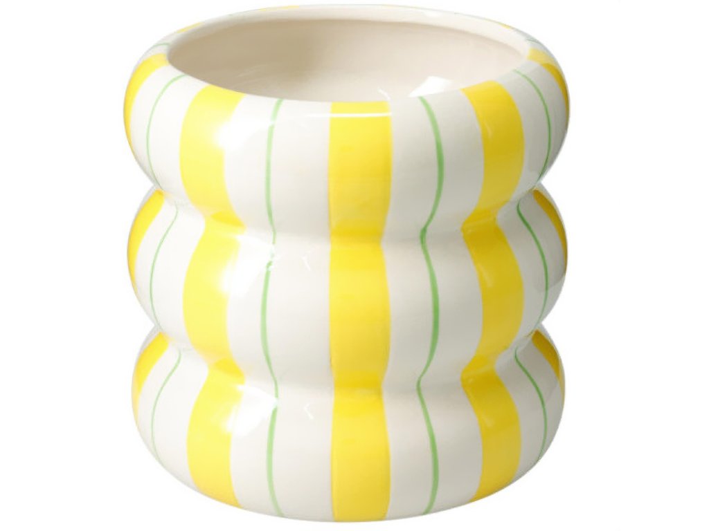 Ceramický obal na květináč LINJE s vlnitým tvarem a barevnými pruhy - stylový design, který se dokonale hodí do různorodých interiérů