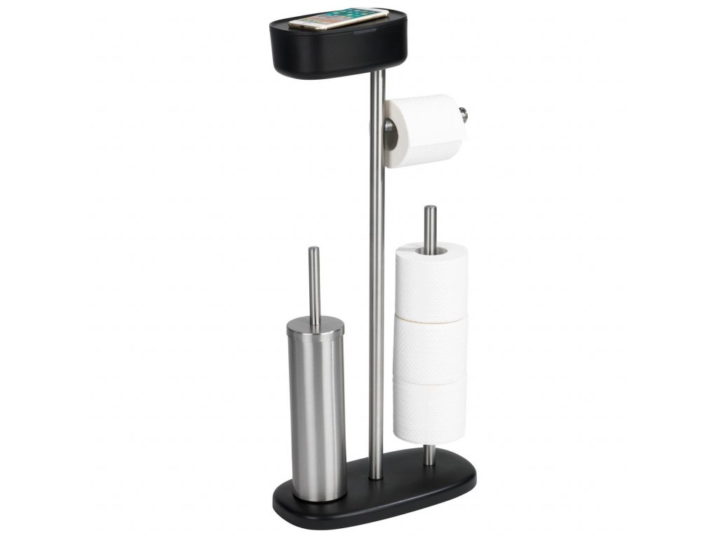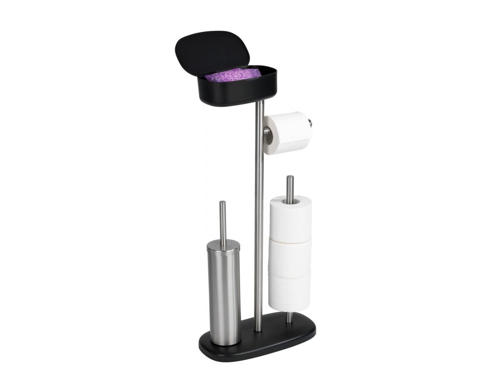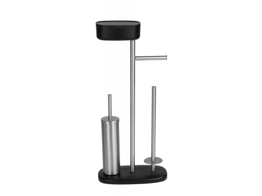 Stojan na toaletní papír a WC štětku s policí a úložným košem RIVAZZA, 4 v 1, černý