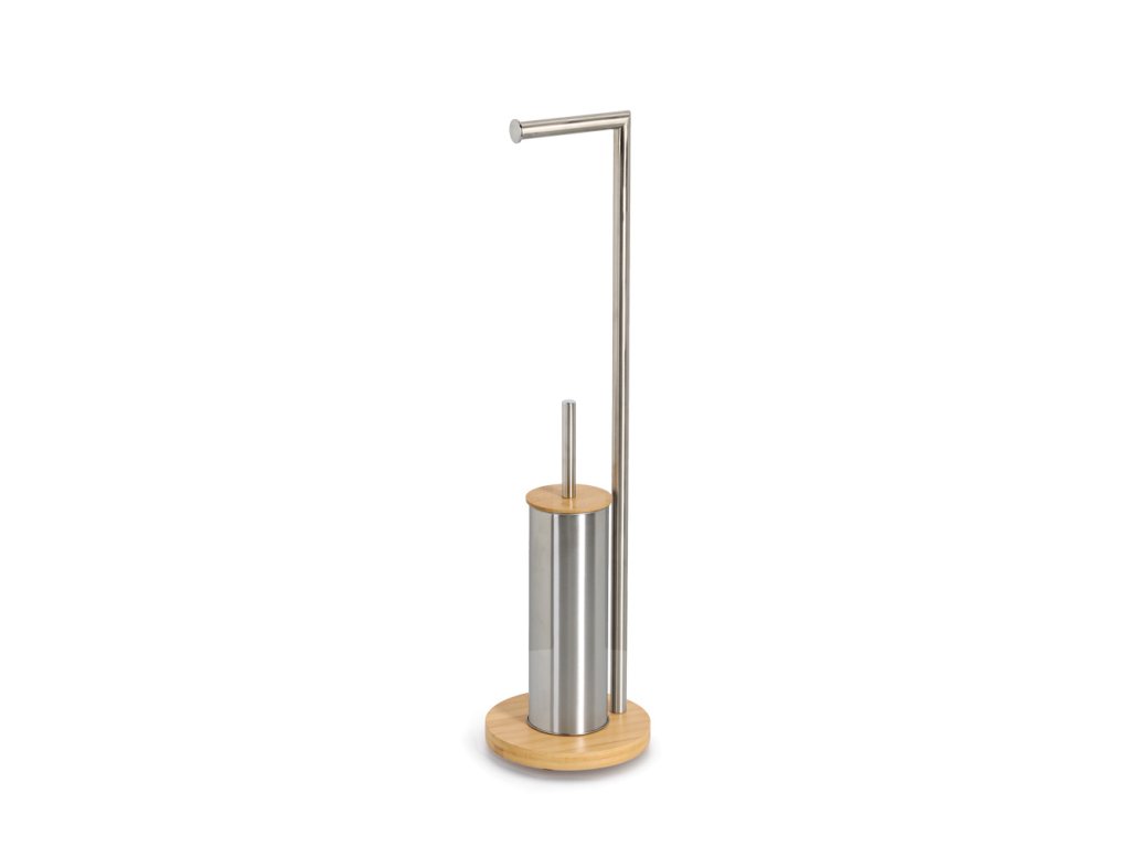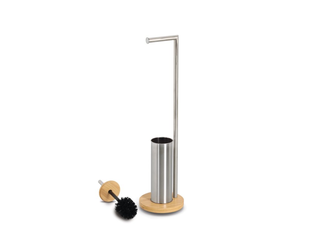 Stojan na toaletní papír a WC štětku z bambusu a nerezové oceli - elegantní konstrukce spojující moderní design s funkčností