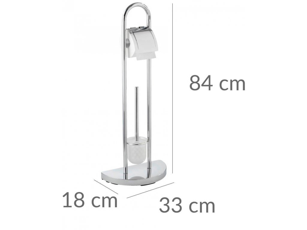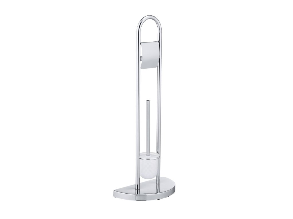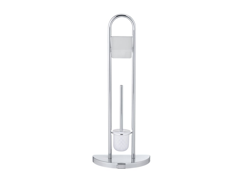 Koupelnový stojan COSENZA na polokruhové základně spojuje držák na toaletní papír a WC štětku. Určitě dodá každé koupelně elegantní charakter a udrží papír a štětku na snadno dostupném místě. Zaujímá málo místa. Je vybaven otevřenou nádobou na štětku s vyměnitelným vláknem. Nejvyšší kvalita a solidní zpracování zaručují dlouhotrvající používání.
