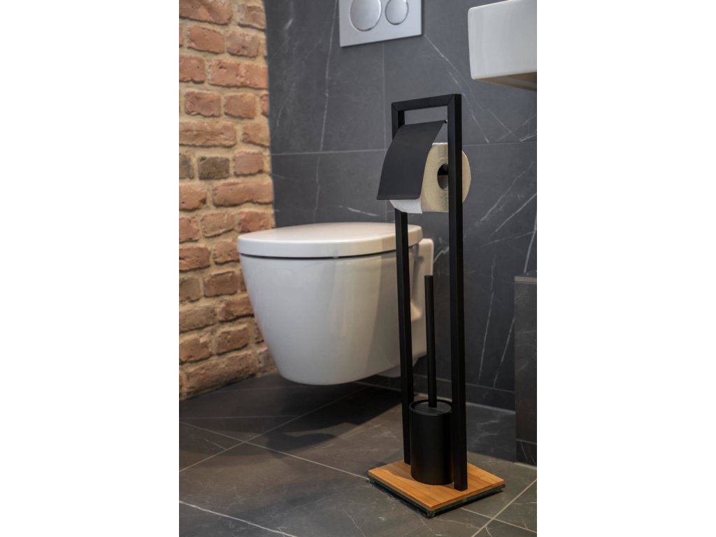 Stojan na toaletní papír s WC kartáčem BAMBUSA, černý, WENKO