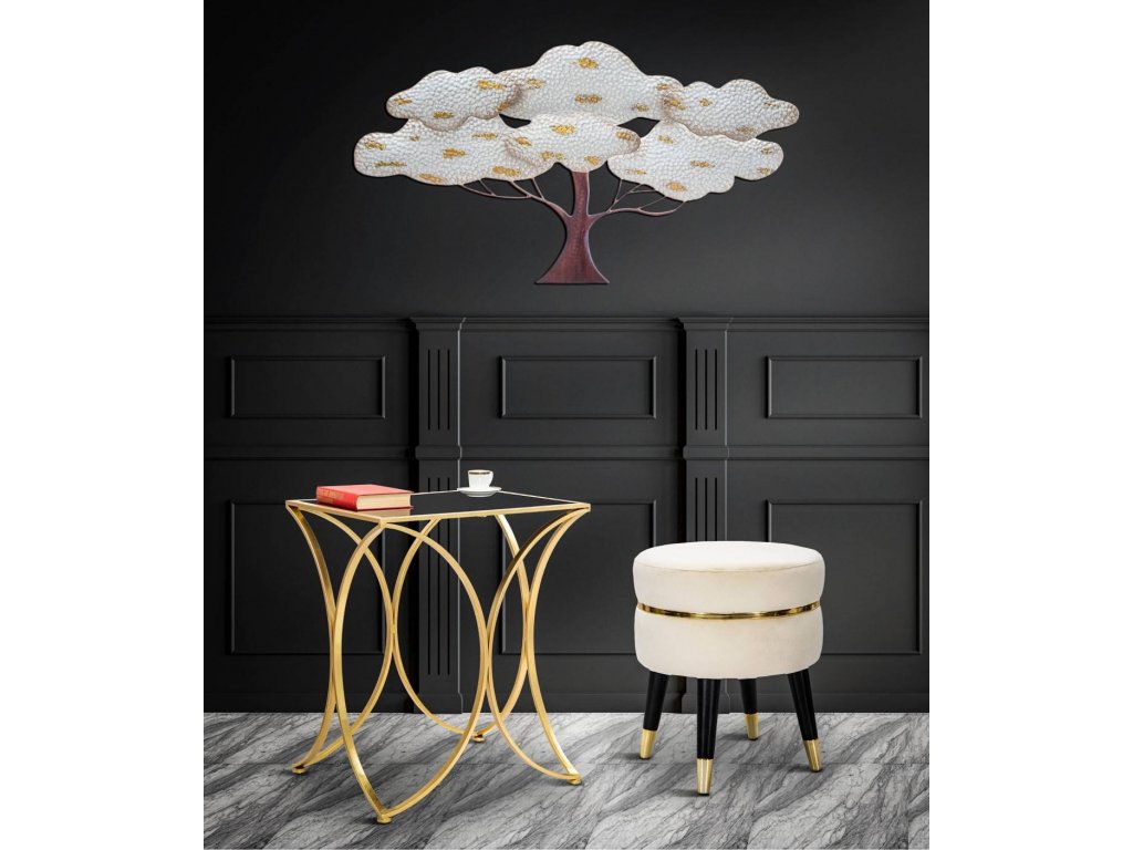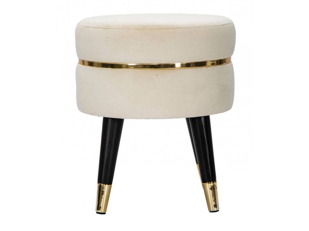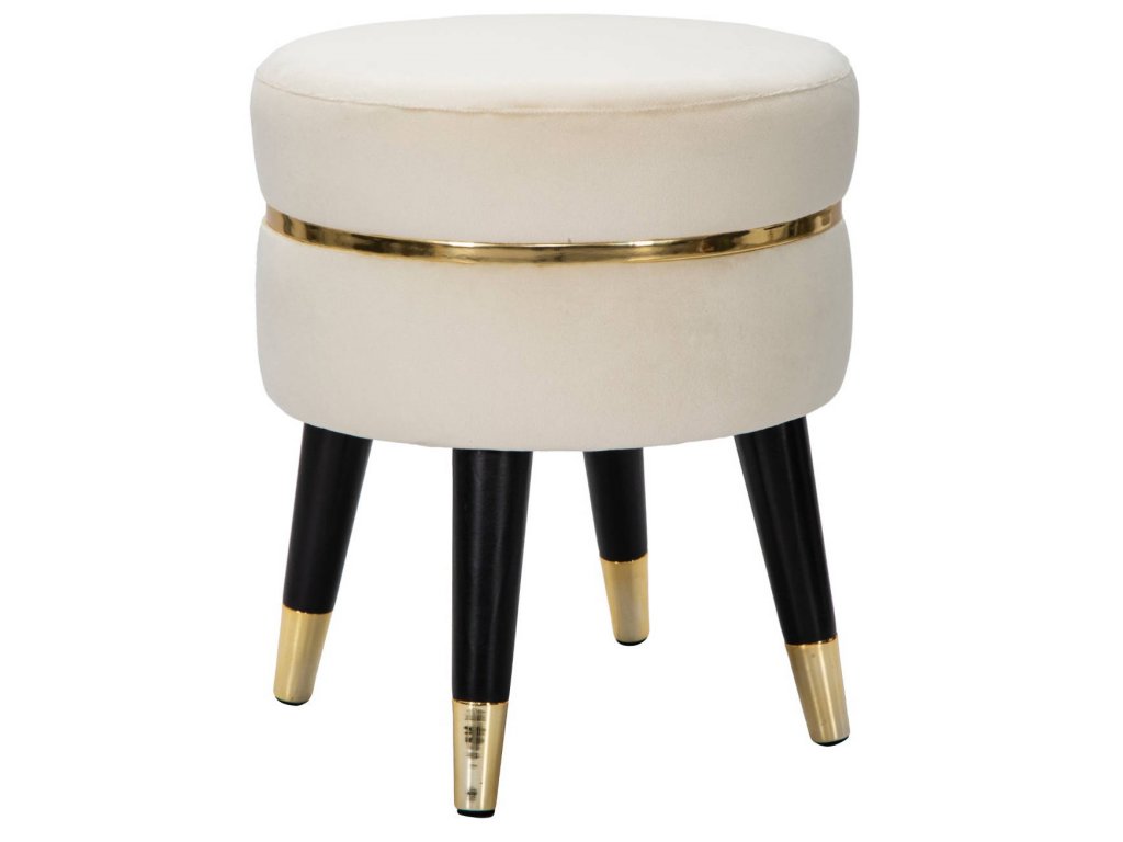 - Vysoká kvalita materiálů: Nohy taburetu jsou vyrobeny z dřeva a sedátko je potaženo měkkým velurem. Zlaté dokončení mu dodává výjimečný charakter.