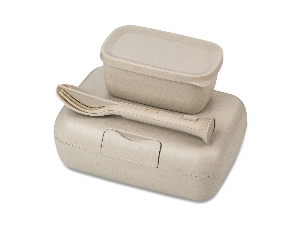 Svačinový box s přepážkami CANDY READY + sada příborů, 4dílný, KOZIOL
