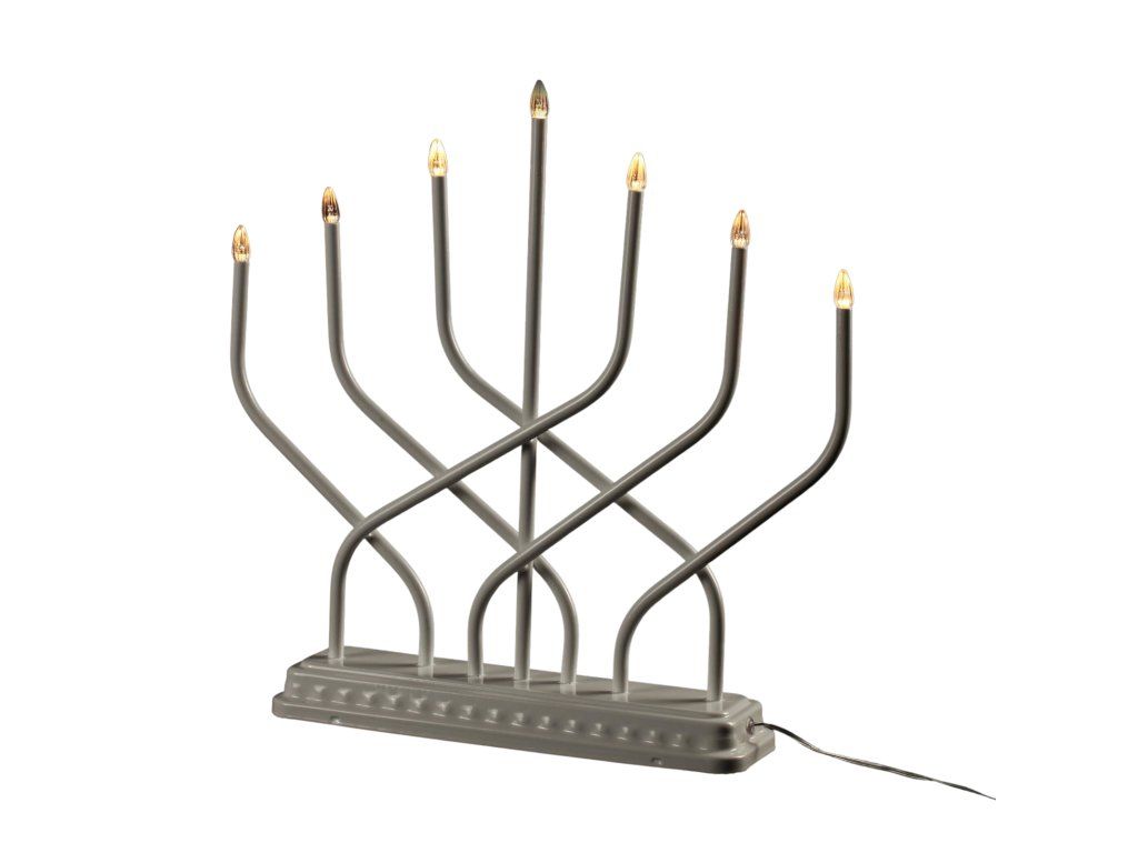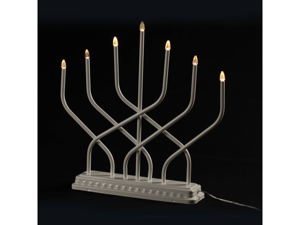 - Jednoduchá forma: Svícen vyrobený z plastu byl navržen s velkou pečlivostí. Tenké tyčky, zakončené světýlky, se kříží navzájem a dokonale imitují tvar skutečného svícnu.