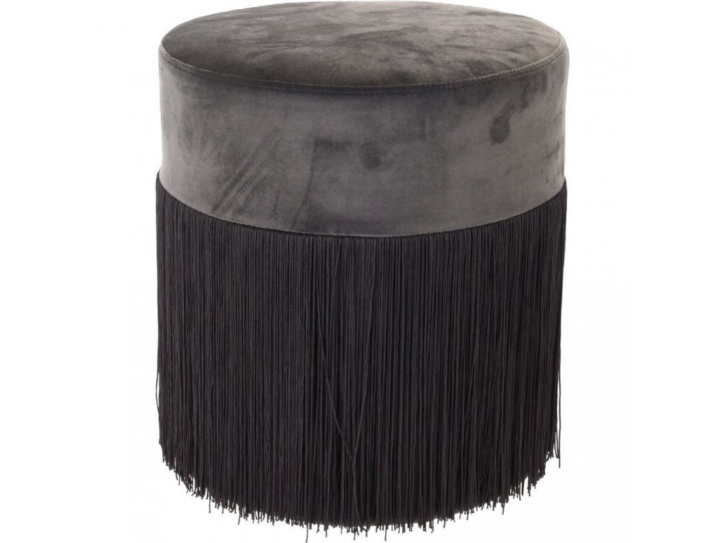 Sametový pouf s třásněmi, O 36 x 39 cm, šedá