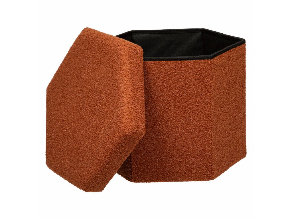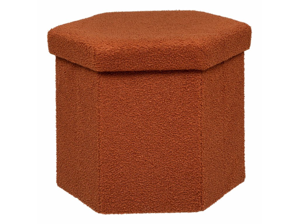 Taburet ve tvaru krychle bouclé HEXA s úložným prostorem, 46 x 40 x 38 cm, oranžový