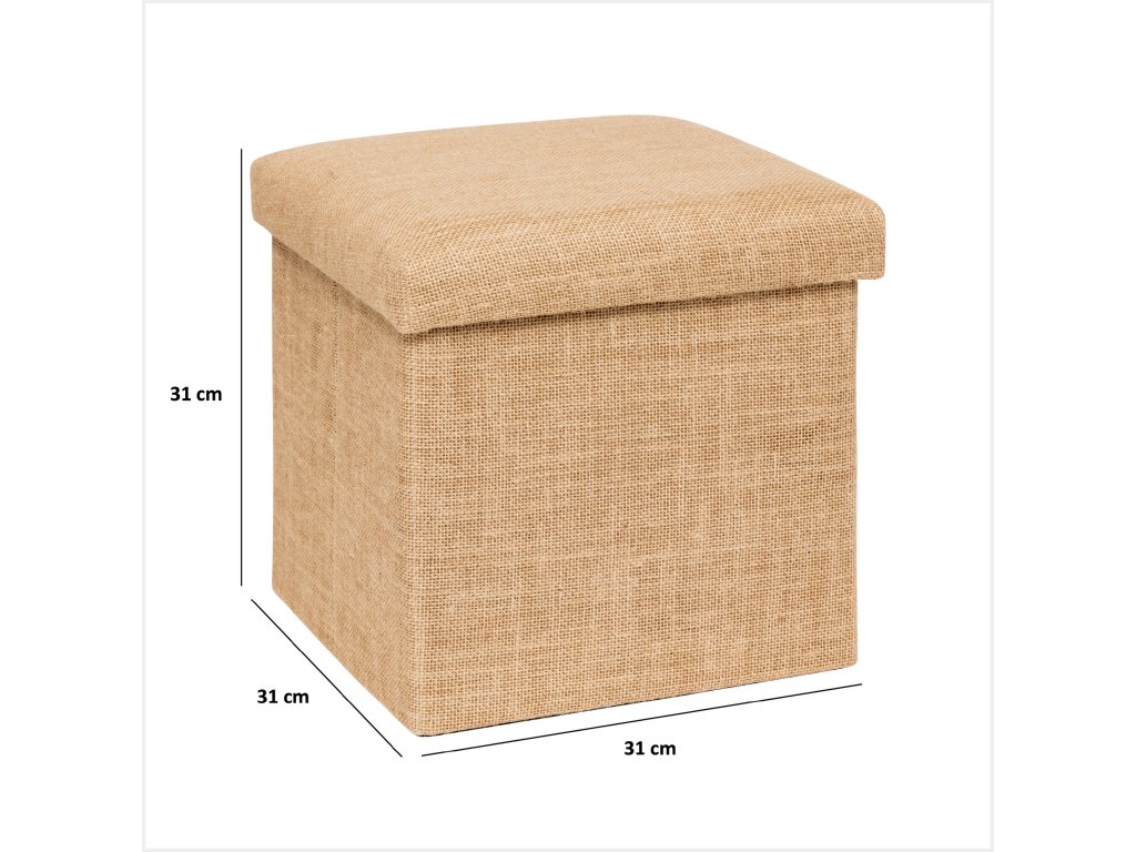 - Praktičnost a funkčnost: Skládací puf JUTA o rozměrech 31 x 31 x 31 cm je ideálním řešením pro ukládání drobností v každé místnosti. Díky odnímatelnému víku může vnitřek pufu sloužit jako úložný prostor, což umožňuje udržet pořádek ve vašem domě.