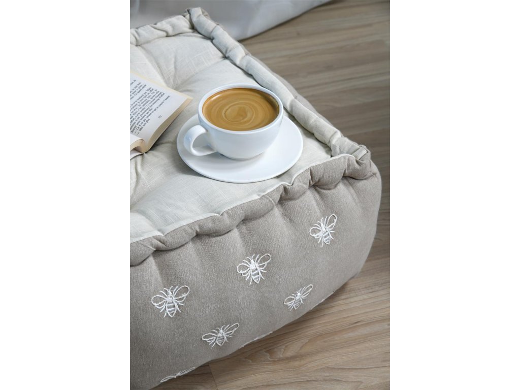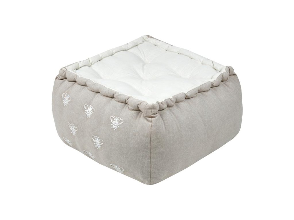 - Stylový detail: Puf zdobený jemným vyšíváním ve tvaru včel přidává kouzlo a činí ho nejen funkčním nábytkem, ale také atraktivním dekoračním prvkem interiéru.