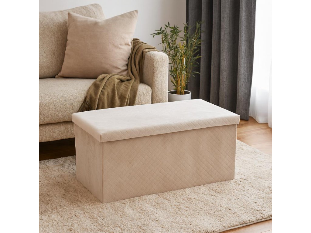 Velurová taburetka s úložným prostorem MODUS, 76 x 38 x 38 cm