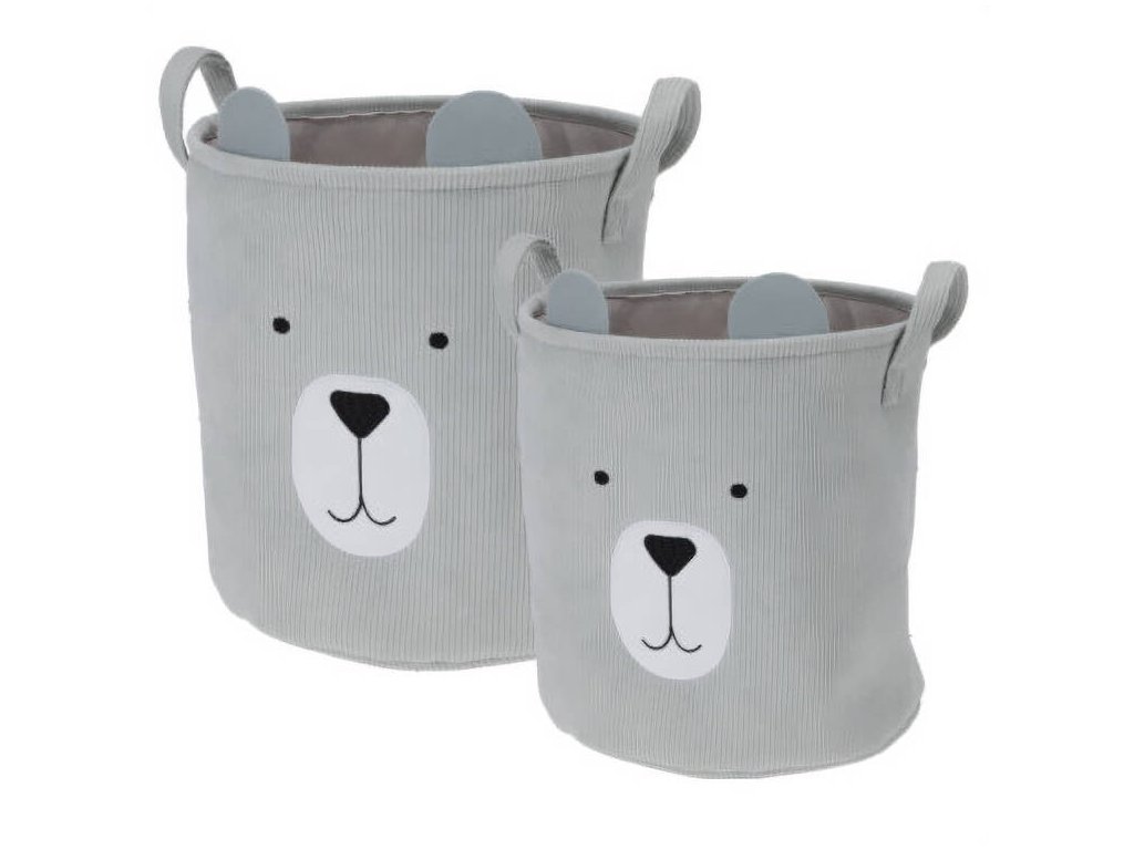 Úložné koše na hračky CUTIE s ušima, manšestrové, 2 ks, šedá, šedá